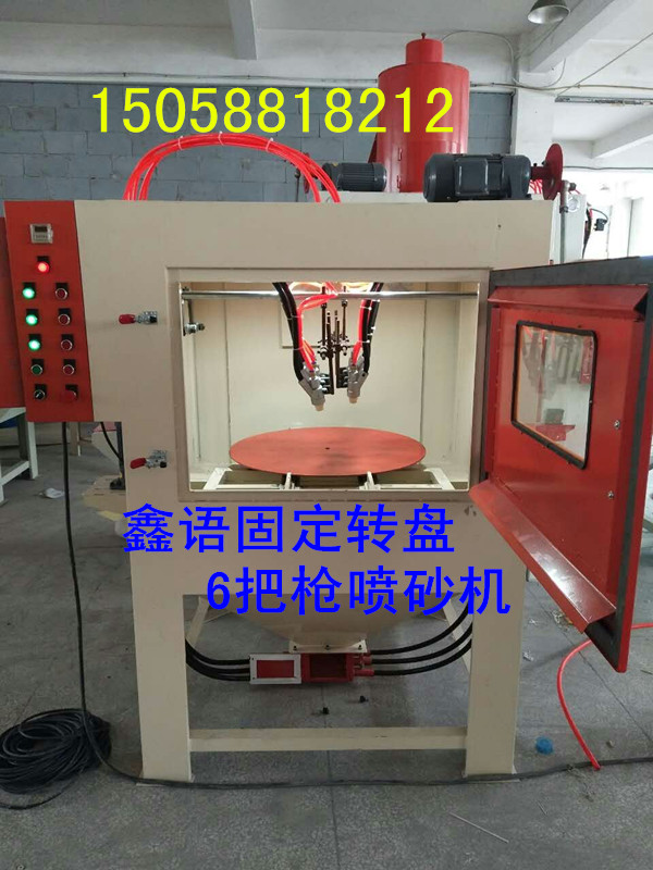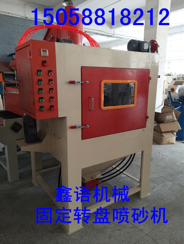 固定轉盤自動噴砂機,自動固定轉盤噴砂機,模具自動噴砂,噴砂機;本機適用于圓,盤,方類型平板零件的表面噴砂加工; 加工工件尺寸為寬1000以內的工件,模具或者板狀塊狀的產品自動噴砂,咨詢電話:15058818212